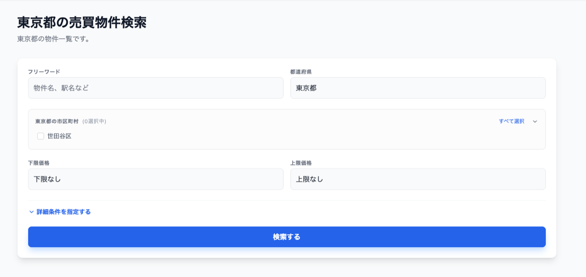 検索結果ページへ進んだあとも、上部の検索フォームから条件を調整できます。