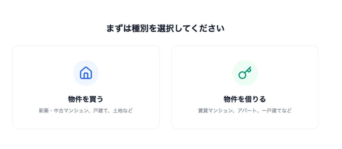 より細かく探したい場合は、トップページの 物件を買う または 物件を借りる から検索画面を開きます。